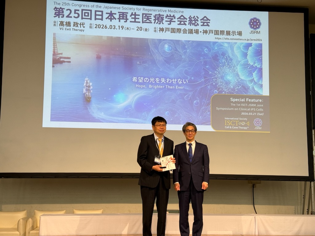 2026年3月19日(木)~20日(金)に、神戸国際会議場・神戸国際展示場(神戸)で開催された第25回日本再生医療学会総会にて、岡野センター長、森本副センター長、嶋田特任講師が下記の発表を行いました。